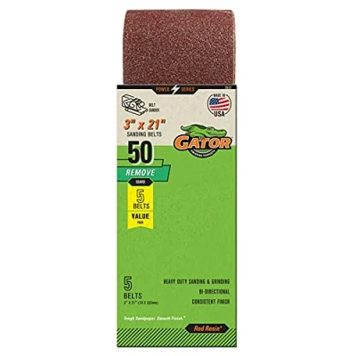 Gator 3" x 21" Red Resin Aluminum Oxide Sanding Belts, 50 Grit, 5 Pack