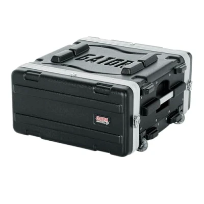 Gator Cases Lightweight Molded 4U Rack Case with Built in Power Supply, Heavy Duty Latches, Retractable Tow Handle, and Recessed Wheels; 19.25" depth (GRR 4PL US)