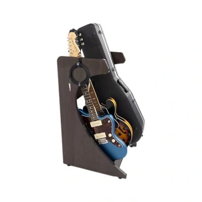 Convenient Cable Storage Hanger Hooks on Both Sides Safe for Standard Polyurethane Finishes, Not Tested for Compatibility with Vintage/Lacquer Finishes. Ships Flat Packed with Assembly Hardware Sturdy 1”/25mm-Thick Laminated Plywood Construction with Textured Wood Grain Surface Easily Configurable to Fit Three (3) to Four (4) Instruments, Cases, or a Combination of Both, with Adjustable Divider Pegs Featuring Rubberized Protective Layering