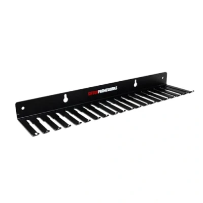 Wall Mountable Cable Hanger & Organizer Provides Convenient, Accessible Storage for Audio & Computer Cables Design Prevents Potential Damage to Cables from Over-Coiling & Kinks, with 19 Alternating-Size Spaces from 5-9mm Fearutres Short & wide-Distance Mounting Hole Options Rugged Steel Construction with Black Powder Coat Finish Product Dimensions: 14"/356mm (L) x 3. 44"/87mm (W) x 1. 25"/32mm (H). Net Weight 1lbs. /0. 45 kg