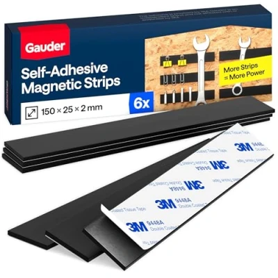 VERSATILE USE - The GAUDER Pre-Cut Magnetic Strips (15 cm x 2 mm) are ideal for mounting tools, kitchen utensils and other metal objects. STRONG ADHESION - Thanks to the special adhesive, the magnetic strips offer a long-lasting hold on many surfaces. Dust and dirt may reduce adhesion strength. MORE STRIPS = MORE POWER - Placing multiple GAUDER magnetic strips side by side significantly increases the holding force - ideal for securely attaching heavier items. NOT SUITABLE FOR TONIE FIGURES - Magnetic strips are not designed as a surface for Tonie figures or other magnets. For this purpose, please use GAUDER Metal Tape. GAUDER IS HERE FOR YOU - Before and after purchase, the GAUDER team provides support and personal assistance. Please contact us, if you have any questions. Your satisfaction is our highest priority., Manufacturer: GAUDER