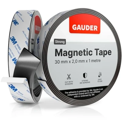 MANY POSSIBILITIES - Use GAUDER magnetic tape (2 mm x 30 mm x 1 m) at home for crafts, office organization, school, workshop or other places to attach items to magnetic boards and metal surfaces. STRONG ADHESIVE - Our wide and strong magnetic strips with adhesive backing from GAUDER adheres reliably to many surfaces thanks to 3M adhesive. Important: Dirt, oil and other residues can impair the adhesive strength. USE NOTE - Our magnetic strip is NOT DESIGNED for attaching Tonies, magnets and magnetic tapes - please use our GAUDER metal tape for this purpose. INDIVIDUAL APPLICATION - The strong magnetic tape can be effortlessly cut with standard household scissors. After application, you can remove the adhesive magnetic strips without leaving any residue. GAUDER IS THERE FOR YOU - After the purchase, the GAUDER team is available to provide you with extensive advice and support. Your satisfaction is our goal and we stand for it with our name.