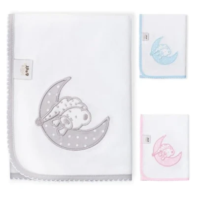 Embroidered baby gauze with decorative boots. Dimensions: 60 x 65 cm Material: Cotton The multifunctional gauze serves as a blanket, summer blanket, towel, etc.