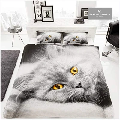 ✔ BOLD 3D CAT DESIGN: This unique duvet set features a striking 3D image of a close-up grey cat’s face, with startlingly beautiful yellow eyes for an exciting and eye-catching bed linen addition. ✔ SUPER SOFT AND SMOOTH MATERIAL: Crafted from supremely soft material, this exquisite bedding set slides smoothly across your skin as you drift off to sleep. ✔ STYLISH THREE-PIECE SET: With a quilt cover and matching pillowcases, this fabulous 3D duvet set contains all you need for a brand-new bed set ✔ PERFECT COSY COMPANION: This premium bedding set is designed to keep you resting at a comfortable temperature so you can stay cosy throughout the chilly nights. ✔ MACHINE WASHABLE: Created from easy care fabric, this machine washable set is simple and straightforward to care for in your own home.