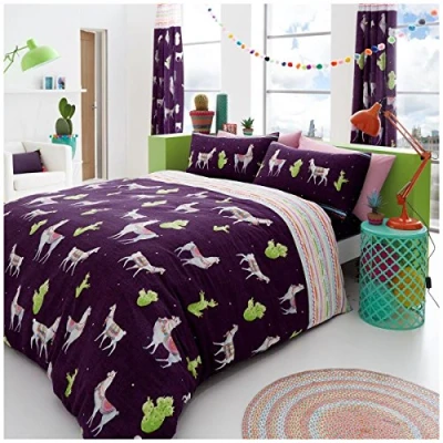 MODERN AND FUNKY LLAMA DESIGN: An attractive and adorable llama and cactus bed cover set is the ideal way to add unique personality and flair to your bedroom furnishings. 2 PIECE HOME ACCESSORY ADDITION: Including a duvet cover and pillowcase in the same cute Llama design, this comfortable 2pc bedding bundle is a great value update to your home. REVERSIBLE BED SET TO CUSTOMISE YOUR BEDROOM decor : The reverse of this quilt set features a simple pattern of dots on a plain background to give the option of two patterns every night. STAY COOL AND COMFORTABLE ALL NIGHT: This easy fit bedding set is expertly designed to allow heat to travel away from your skin so you can stay resting peacefully throughout the night. MACHINE WASHABLE BEDDING SET: This easy-care duvet cover set is fully machine washable for straightforward, stress-free upkeep.