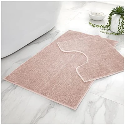 BATHROOM ACCESSORY SET: The bath and pedestal mat pack is an essential addition to your designer bathroom, perfectly rounding off your decor. NON-SLIP PROPERTIES FOR ENHANCED SAFETY: Backed with a rubber backing for non-slip properties, this retro bath mat set is safe as well as stylish. STUNNING PATTERN: An eye-catching pattern of straight-line spirals and rectangles brings an attractive accent to any bathroom environment. HIGHLY ABSORBENT MATERIAL: Absorbent, quick dry polyester is the perfect material to keep moisture from your bathroom floor as you dry off after a bath or shower. MACHINE WASHABLE BATH MAT SET: This easy care bath set is machine washable for greater convenience when cleaning your furnishing items.