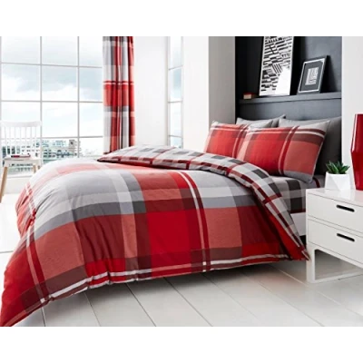 Gaveno Cavailia Waverly Check Luxurious Duvet Cover Sets Quilt Reversible Bedding with Pillowcases (Red, Double)