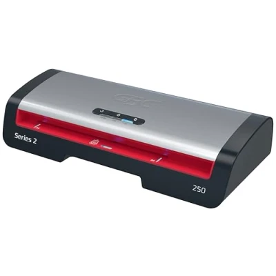 Claim a £20 shopping voucher when you purchase this product until 31st December 2025Terms & Conditions apply, to claim please register online here.The GBC 250 A4 Laminator is a reliable and efficient solution for everyday office laminating needs. Designed for professional environments, this machine offers a combination of performance and ease of use. With a rapid warm-up time of just 1 minute, it can laminate a 75-micron A4 sheet in only 36 seconds, making it perfect for fast-paced office tasks.The intuitive control panel provides three pouch thickness settings, ranging from 75 to 125 microns, allowing for flexibility with various document types. It also includes an anti-jam reverse button for the smooth removal of misfed pouches. Additionally, the SMART status LED system offers clear visual and audible cues: it lights up red during warm-up, turns blue with a sound when ready, and automatically shuts off after 15 minutes of inactivity to conserve energy. The SMART entry guide LEDs help ensure straight pouch alignment, preventing jams and ensuring perfect lamination every time.Protect and preserve your important documents quickly and efficiently, achieving a smooth, professional finish with each use.Black and red colour.