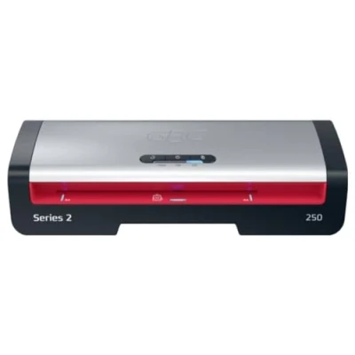 GBC 250 Office A4 Laminator Fast 1 Minute Warm up time, 75 125 microns, LED Indicators, Anti Jamming, Automatic Shutdown, Including 5 Laminating Covers, Black/red, 4410070EU