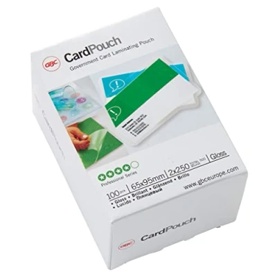 High gloss surface and insert: the glossy laminating pouches optimise and deepen printed colours; ideal for attaching clips and chains for many different ID formats Versatile compatibility: can be used for all standard laminators - film thickness 250 mic (2 x 250 micron) for use in the office, shop, school or at home Box contents and note: 1 x pack of 100 GBC 65 x 95 mm laminating pouches 250 micron, 3740432; extensive GBC range offers laminating pouches for every purpose. Please note the selection of size before purchase