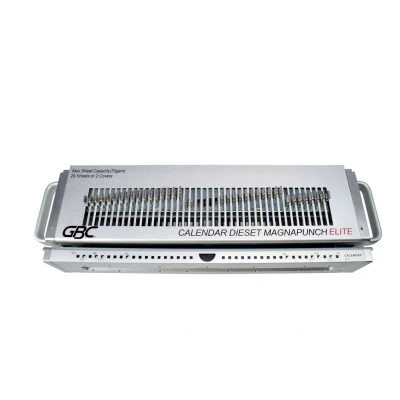These Punching die sets are compatible with the GBC Magnapunch Elite paper punching machine.Deselectable pinsEasy die change with locking system can be completed in less than 1 minute.Up to 360mm paper widthAdjustable margin depthPin location and ruler decal which are viewable during set up and operation.A4/A5 paper format