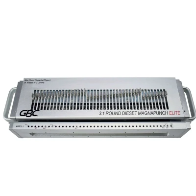 These Punching die sets are compatible with the GBC Magnapunch Elite paper punching machine.Deselectable pinsEasy die change with locking system can be completed in less than 1 minute.Up to 360mm paper widthAdjustable margin depthPin location and ruler decal which are viewable during set up and operation.A4/A5 paper format