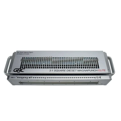 These Punching die sets are compatible with the GBC Magnapunch Elite paper punching machine.Deselectable pinsEasy die change with locking system can be completed in less than 1 minute.Up to 360mm paper widthAdjustable margin depthPin location and ruler decal which are viewable during set up and operation.A4/A5 paper format