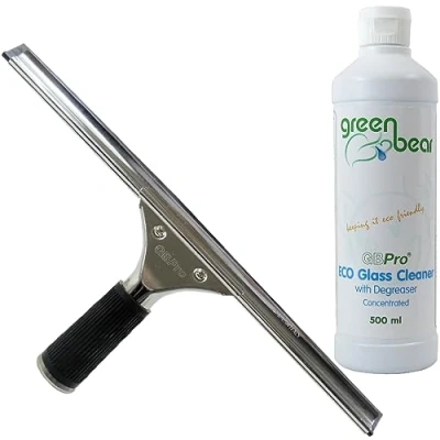 GBPro Professional Window Squeegee Stainless Wiper 35cm / 14 inches + Eco Concentrated Glass Cleaner with Degreaser