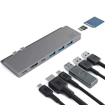 GC Connect60 HUB USB C 8im1 Adapter Docking Station (Thunderbolt 3 (4K 60Hz), C, x 3.0, HDMI, microSD, SD) Power Delivery 100 W for MacBook Pro 13 inch/15 inch (2016/2017/2018/2019/2020),