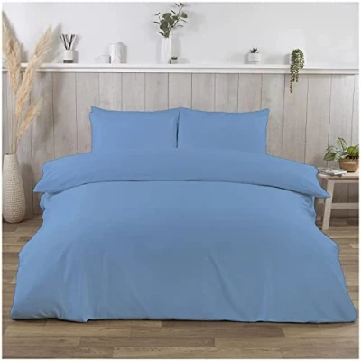 GC GAVENO CAVAILIA 100% Brushed Cotton Duvet Cover, Flannel Plain Bedding Sets, Soft Bed Blue, King
