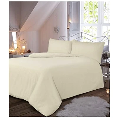 GC GAVENO CAVAILIA 100% Brushed Cotton Duvet Cover, Flannel Plain Bedding Sets, Soft Bed Cream, Double