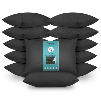 GC GAVENO CAVAILIA 12 Pairs Microfiber Pillowcases Plain Dyed Housewife Style Soft, Breathable & Durable Fade, Wrinkle Shrink Resistant Machine Washable Standard Size (75x50 cm) Black