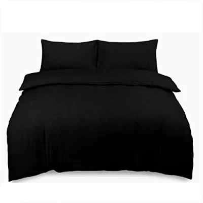 GC GAVENO CAVAILIA 3Pcs Brushed Cotton Bedding Set King Size, Plain Dyed Duvet Cover Sets, Flannelette Quilt Bedset, Black