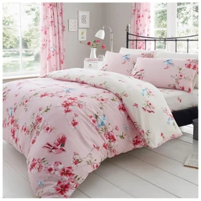GC GAVENO CAVAILIA Birdie Blossom Soft Floral Kingsize Duvet Cover Sets, Breathable Comfy Reversible Botanical Flowers Bedding Set With Pillowcases, Luxury Birds Quilt Cover, Pink