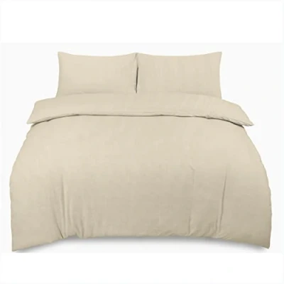 GC GAVENO CAVAILIA Brushed Cotton Bedding Set King Size, Plain Dyed Duvet Cover Sets, Flannelette Quilt Bedset, Cream