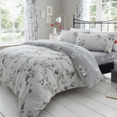 GC GAVENO CAVAILIA Duvet Cover Double Blossom Bedding Set With Pillowcase Polycotton Fabric Grey