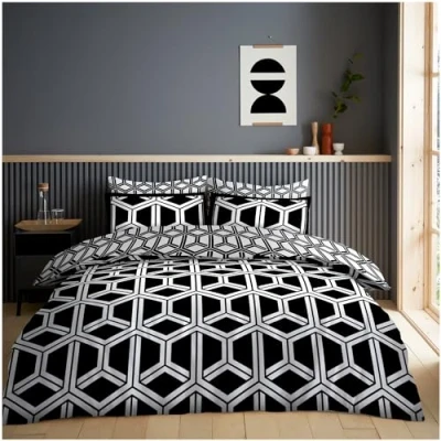 GC GAVENO CAVAILIA Duvet Cover Double with Pillowcases Breathable Polycotton Comforter Reversible Bedding Set (200x200 cm) Washable Bed Black/White