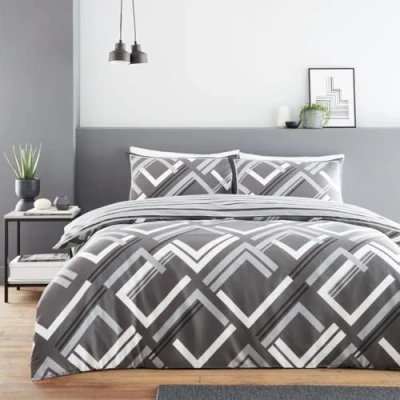 GC GAVENO CAVAILIA Duvet Cover Double with Pillowcases Breathable Polycotton Comforter Reversible Bedding Set (200x200 cm) Washable Bed Charcoal