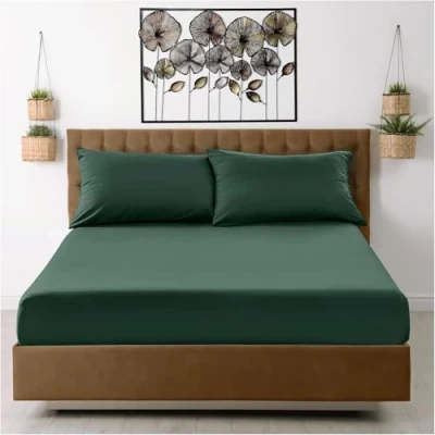 GC GAVENO CAVAILIA Easy Care 38cm Deep Microfiber Fitted Sheet, Polyester Double Sheet (138x190 cm) Hypoallergenic, Fade Resistant Wrinkle Free Elasticated Bed Double, Dark Green