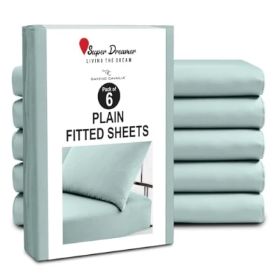 GC GAVENO CAVAILIA Fitted Sheet Double 6 Pack Plain Dyed Microfiber Bedding Sheets Fade, Wrinkle & Shrink Resistant Bottom 25cm Deep Breathable Bed Elasticated Corners Duck Egg