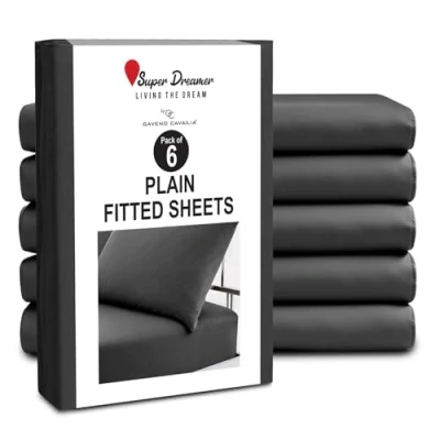 6-PACK VALUE BUNDLE: Includes 6 premium-quality fitted sheets, offering great value for homes, rentals, dorms, or hotels needing frequent linen changes. HIGH-QUALITY POLYESTER FABRIC: Made from soft, 100% brushed polyester microfiber for a smooth, breathable, and comfortable sleep surface. STANDARD MATTRESS FIT: Available in multiple sizes like Single (91x193 cm), Double (137x193 cm), and King (152x203 cm), fitting most standard beds. DEEP POCKET DESIGN (25CM) – 10-inch deep pockets with strong elasticated edges provide a snug, slip-free fit over mattresses up to 25cm thick. ELASTIC CORNERS: Fitted sheet features strong elastic on all corners to ensure a tight, secure fit that stays in place all night without bunching or slipping.