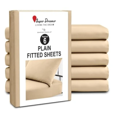 6-PACK VALUE BUNDLE: Includes 6 premium-quality fitted sheets, offering great value for homes, rentals, dorms, or hotels needing frequent linen changes. HIGH-QUALITY POLYESTER FABRIC: Made from soft, 100% brushed polyester microfiber for a smooth, breathable, and comfortable sleep surface. STANDARD MATTRESS FIT: Available in multiple sizes like Single (91x193 cm), Double (137x193 cm), and King (152x203 cm), fitting most standard beds. DEEP POCKET DESIGN (25CM) – 10-inch deep pockets with strong elasticated edges provide a snug, slip-free fit over mattresses up to 25cm thick. ELASTIC CORNERS: Fitted sheet features strong elastic on all corners to ensure a tight, secure fit that stays in place all night without bunching or slipping.