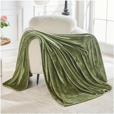 GC GAVENO CAVAILIA Flannel Fleece Throw Blanket King Size 200x240 Cm Sage Green