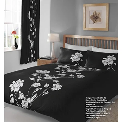 SIMPLE BOTANIC PANEL SET: This simple floral-patterned duvet cover set exudes grace and sophistication throughout your bedroom décor ELEGANT ROSE PATTERN BRINGS FRESH LIFE TO YOUR BEDROOM ACCESSORIES: Beautiful flowers bloom on the front of this gorgeous quilt set and on each matching pillowcase EASY FIT BEDDING IN A RANGE OF SHADES: Choose from berry, black, choco, purple, red or teal to perfectly match your style and bedroom furnishings HIGHLY DURABLE, EXPERTLY CRAFTED BED SET: This exquisite quilt set is manufactured with the greatest of care to be enhancing your bed linen collection for a long time to come. 3 PIECE, REVERSIBLE DUVET SET: This three-piece bedding set contains a duvet cover and pillowcases, all in the same stunning Chantilly pattern