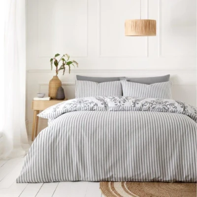 Add depth and versatility to your bedroom with the Margaux Reversible Printed Duvet Set, featuring a sophisticated pattern in your choice of Blue or Charcoal. Designed with two stylish looks in one, this soft-touch bedding set brings modern flair and comfort to any room. Available in Double and King sizes, each set includes a duvet cover and matching pillowcases.. Fully Reversible Design – Enjoy two stylish looks in one set with a contrasting reverse pattern. Available in Blue & Charcoal – Choose from rich, moody tones or calming cool hues to suit your space. Complete Bedding Set – Includes duvet cover and two matching pillowcases for a coordinated finish. Soft & Breathable Fabric – Gentle on skin and ideal for comfortable, all-season use. Machine Washable & Easy-Care – Quick drying and made to maintain its shape and colour. Available in Double & King Sizes – Designed to fit standard UK beds perfectly