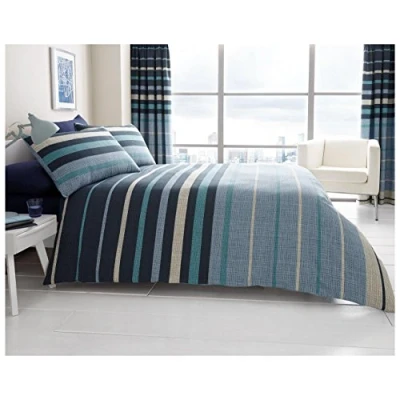 GC GAVENO CAVAILIA Luxury Printed Duvet Cover, Polycotton Reversible Bedding Quilt Set, Block Stripe Blue, King