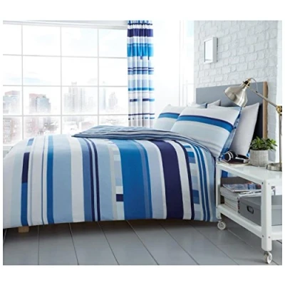GC GAVENO CAVAILIA Luxury Printed Duvet Cover, Polycotton Reversible Bedding Quilt Set, Chester Stripe Blue, King