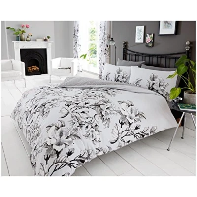 GC GAVENO CAVAILIA Luxury Printed Duvet Cover, Polycotton Reversible Bedding Quilt Set, Eden Grey, Double