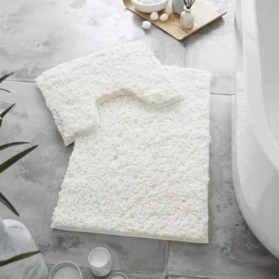 GC GAVENO CAVAILIA Luxury Super Soft 2 Piece Zero Twist Bath Mat Pedestal Set Non Slip, Extra Absorbent 100% Polyester Bathroom Toilet Rug, Regular (50x80, 50x40 cm), Cream