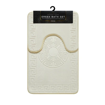 GC GAVENO CAVAILIA Memory Foam Bath Mat Non Slip Extra Soft Highly Water Absorbent Bathroom Sets 2 Piece Greek Toilet Rug (50 x 80 cm) & Pedestal Set 40 Washable Cream
