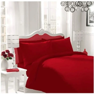 GC GAVENO CAVAILIA Plain Dyed Bedding Sets, Brushed Cotton Double Duvet Set, Reversible Flannelette Quilt Bedset, Red