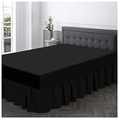 GC GAVENO CAVAILIA Plain Dyed Valance Fitted Sheet Polycotton Soft Bedsheets For King Size Bed Frill Bedding Base Wrap Black