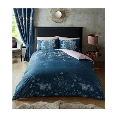 GC GAVENO CAVAILIA Polycotton Fabric Flower Bedding Sets King Size, Super Soft Reversible Floral Duvet Cover With Pillowcases, Navy