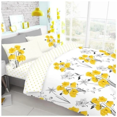 GC GAVENO CAVAILIA Poppy Duvet Cover Sets, Poly Cotton Quilt Cover, Breathable Printed Bedding Sets King Size, Yellow