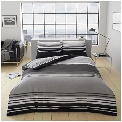 GC GAVENO CAVAILIA Printed Stripe Duvet Cover King Size, Striped Bedding & Linen Set, Easy Care Quilt Bed Covers, Black/White