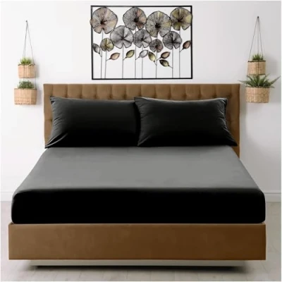 GC GAVENO CAVAILIA Single Fitted Sheet (91x190 cm) Soft Polyester Fabric Easy Care & Fade Resistant Bottom Microfiber 38cm Deep Breathable Plain Bed Elasticated, Black