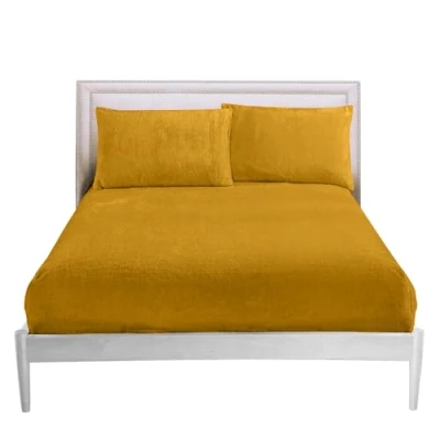 GC GAVENO CAVAILIA Teddy Fleece Fitted Sheet Single, Super Soft Bottom With Elasticated Corners, Warm & Cozy Polycotton Bed sheets, Ochre