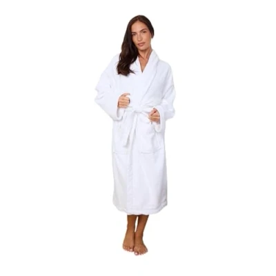 LUXURIOUS FABRIC: Wrap yourself in comfort with our terry towelling bath robe, crafted from soft, absorbent cotton for a warm and fluffy feel. ELEGANT DESIGN: This dressing gown fluffy style features a shawl collar and belt, giving a timeless, cozy look for both men and women. PREMIUM QUALITY: 100% cotton towelling bath robes for men and women, tightly stitched with two handy front pockets for lasting durability. MULTI-PURPOSE COMFORT: From fleece dressing gown men love to mens robes dressing gowns for spa or travel, enjoy all-day softness. EASY CARE: Machine wash at 40°C, tumble dry on low heat, no bleach. Your robe stays fluffy, absorbent, and perfectly fresh wash after wash.