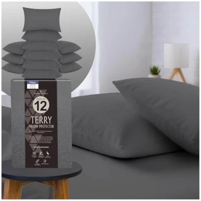 GC GAVENO CAVAILIA Terry Towel Pillow Protector Pack of 6 Breathable & Soft Towelling Waterproof Protectors Anti Allergy Cover Charcoal
