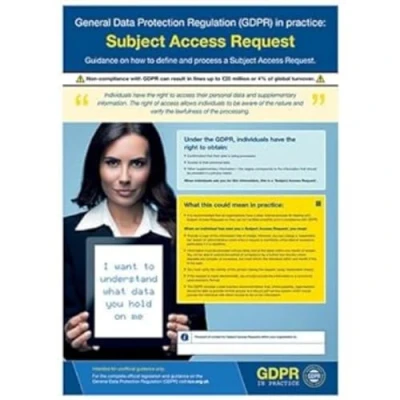 Individuals will now be able to request details of all the personal data an organisation holds on them. There are strict requirements with how these requests with must be dealt with under GDPR, ensure staff in your organisation are aware of them on an ongoing basis A practical and attractive alternative to issuing hundreds of pages of plain text covering GDPR - can be displayed as part of your organisations GDPR training arrangements Be seen to be compliant and taking obligations under GDPR seriously - Features salient points with official guidance from the ICO and practical everyday advice Relevant to all core business departments such as sales, customer service, accounts, marketing, IT, operations and HR High quality posters are printed on 195 micro polypropylene and are available in A2 or A3 sizes